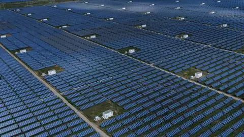 深藍色的光伏板熠熠生輝,風力發(fā)電機的葉片迎風飛轉,百米高的吸熱塔和“鏡子海洋”組成科技感十足的熔鹽塔式光熱電站……真沒想到,塔拉灘這片半荒漠化的“風沙之地”,如今卻成為千萬千瓦級的新能源基地。